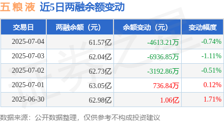 本站消息,7月4日首胜证券,五 粮 液(000858)融资买入1.58亿元,融资偿还2.14亿元,融资净卖出5548.67万元,融资余额61.18亿元。