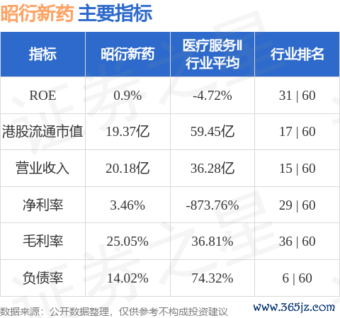 昭衍新药港股市值19.37亿港元,在医疗服务Ⅱ行业中排名第17。主要指标见下表: